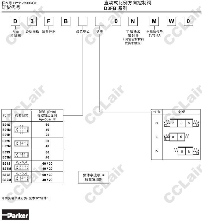 D3FBE01,D3FBE02,D3FBE03,D3FBB31,D3FBB32,D3FBE01SC0NMW0,D3FBE03MC0NMW0,Parker直動式比例方向控制閥