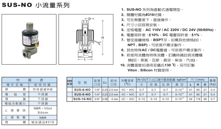 SUS-6-NO,SUS-8-NO,SUS-10-NO,UNI-D小流量電磁閥