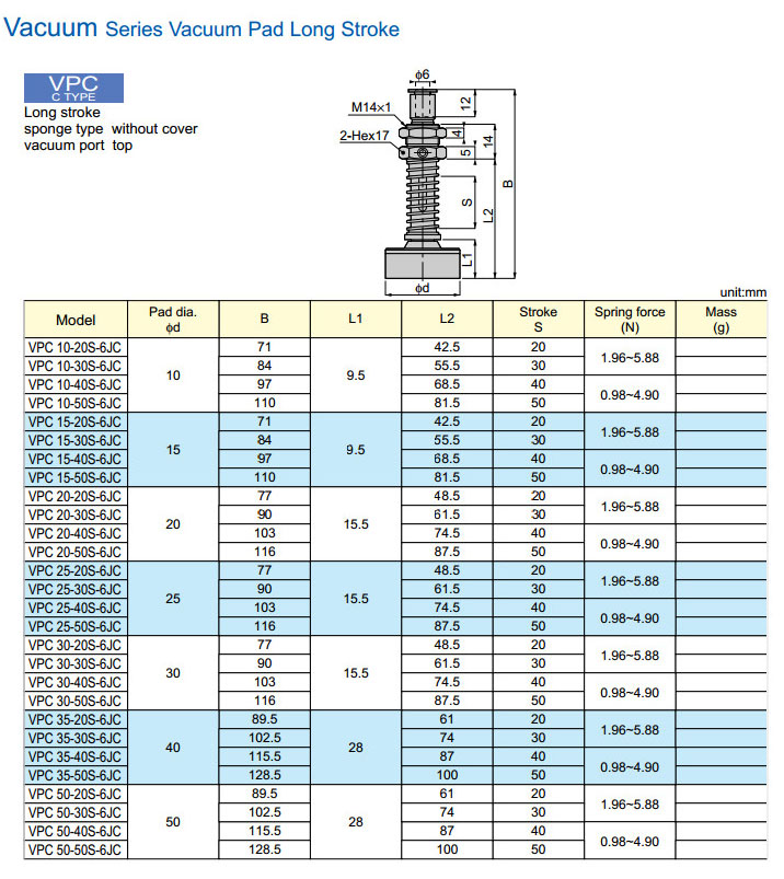 首頁(yè) > 產(chǎn)品&解決方案 > VPC10-20S-6JC,VPC15-20S-6JC,VPC20-20S-6JC,VPC25-20S-6JC,VPC30-40S-6JC,VPC50-20S-6JC,PISCO真空吸盤