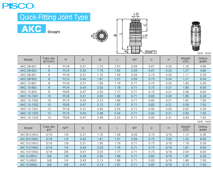 AKC08-601,AKC10-801,AKC10-1001,AKC08-5/16N1U,AKC10-5/16N1U,AKC10-3/8N1U,AKC08-802,PISCO耐熱管接頭 詳細信息 AKC08-601,AKC10-801,AKC10-1001,AKC08-5/16N1U,AKC10-5/16N1U,AKC10-3/8N1U,AKC08-802,PISCO耐熱管接頭