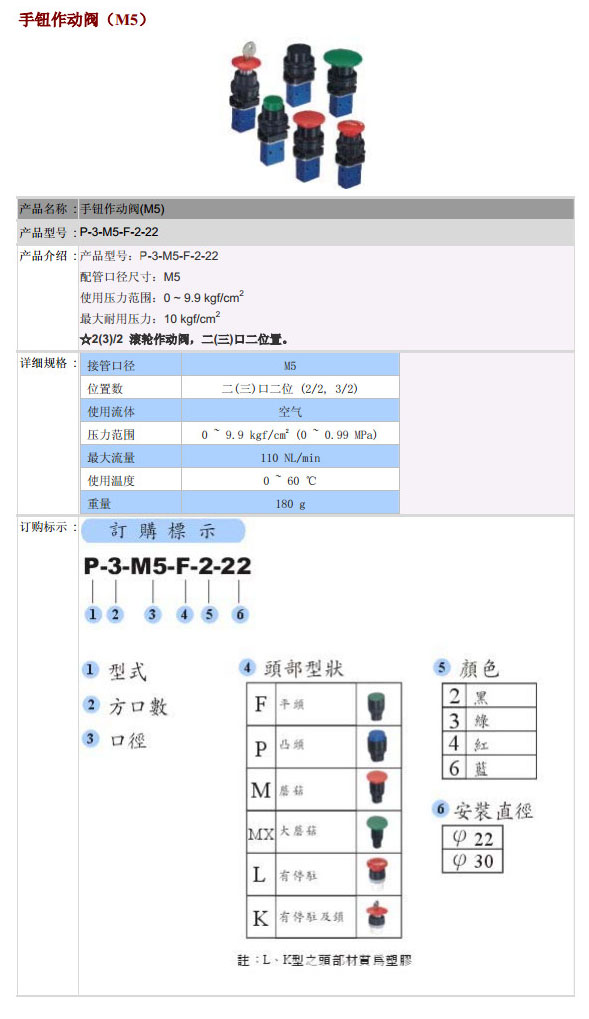 詳細信息 P-3-M5-F-2-22,POSU手鈕作動閥