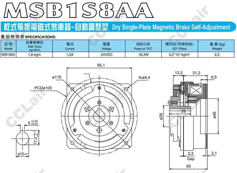 詳細(xì)信息 MSB1S8AA,電磁剎車(chē)器,CCLair
