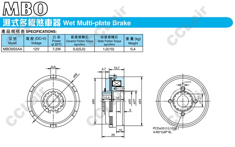 詳細信息 MBO0S5AA,濕式多板剎車器,CCLair