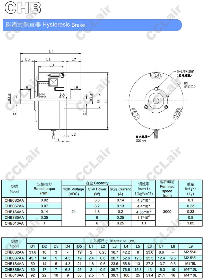 詳細(xì)信息 CHB0S2AA,CHB0S7AA,CHB1S4AA,CHB3S5AA,CHB010AA,磁滯式剎車器,CCLair