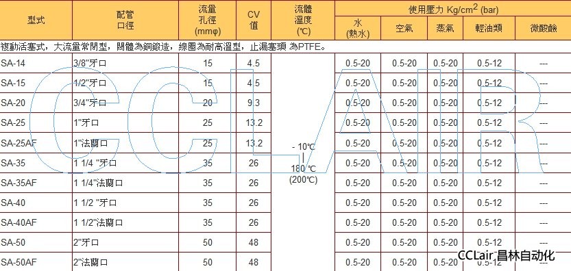 SA-14,SA-15,SA-20,SA-25,SA-25AF,SA-35,SA-35AF,SA-40,SA-40AF,常閉電磁閥