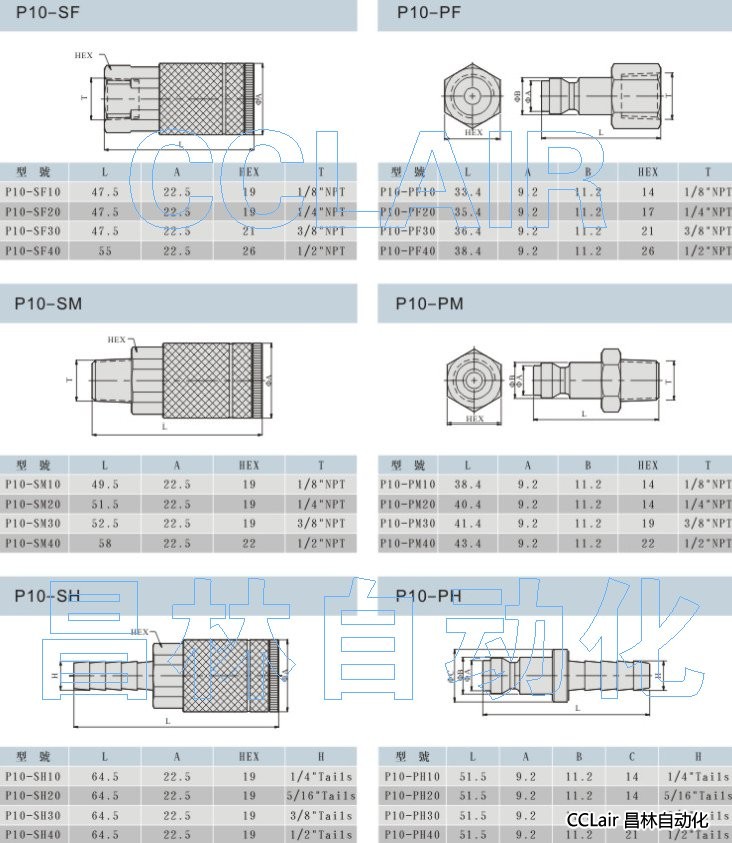 P10-SF10,P10-PF20,P10-SM30,P10-PM40,P10-SH10,P10-PH20,美式快換接頭