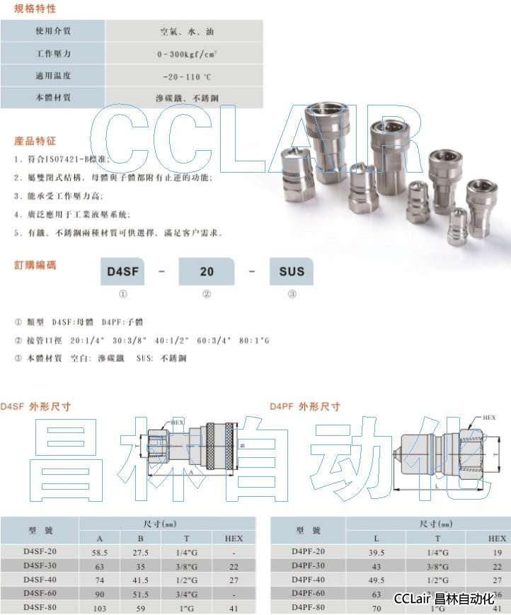 詳細信息 D4SF-20,D4SF-30,D4SF-40,D4SF-60,D4SF-80,D4PF-20,D4PF-30,D4PF-40,快換接頭