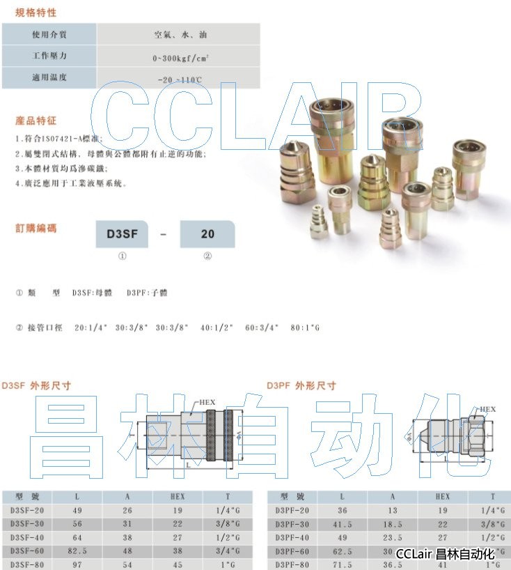 詳細(xì)信息 D3SF-20,D3SF-30,D3SF-40,D3SF-60,D3SF-80,D3PF-20,D3PF-30,D3PF-40,快換接頭