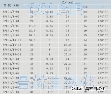 SPCF1/8-01,SPCF1/8-02,SPCF1/4-02,SPCF5/16-01,SPCF3/8-01,SPCF3/8-03,SPCF1/2-04,接頭