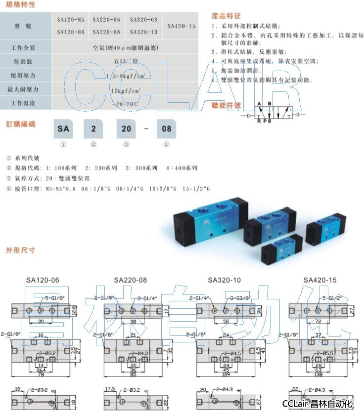 詳細(xì)信息 SA320-08,SA420-10,SA420-15,SA320-M5,SA420-M5,SA320-06,SA420-06,雙頭雙位氣動(dòng)閥