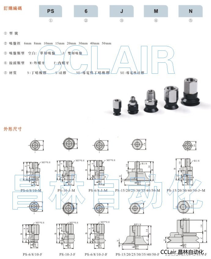 詳細(xì)信息 PS-6-J-M-N,PS-8-J-M-N,PS-10-J-M-N,PS-15-J-M-N,PS-20-J-M-N,吸盤(pán)