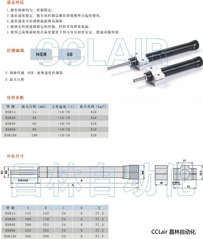 詳細信息 HSR15,HSR30,HSR60,HSR80,HSR100, 油壓速度控制器