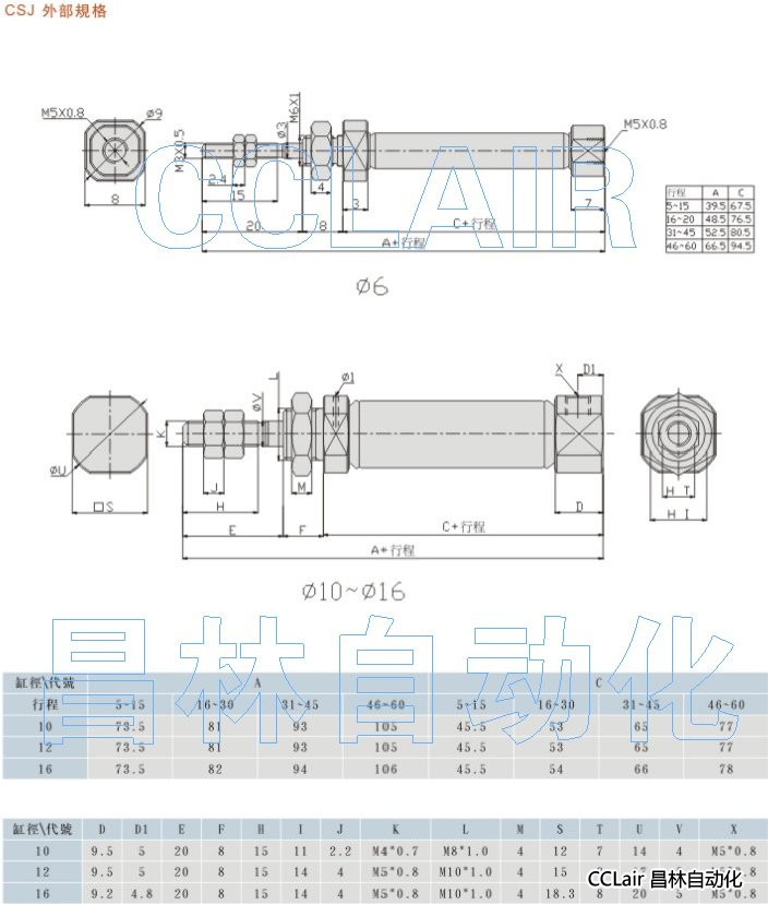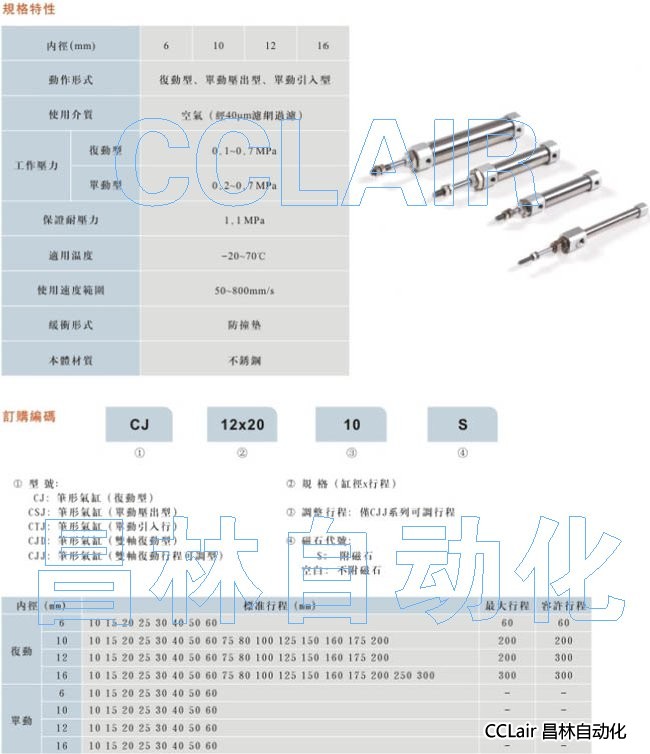 CJ-6X10-S,CJ-6X15-S,CJ-10X10-S,CJ-12X10-S,CJ-16X10-S,筆型氣缸