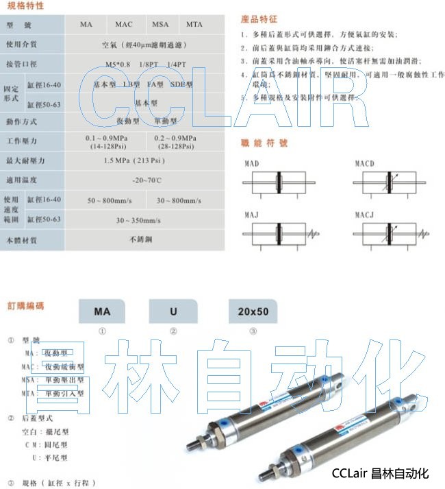 MA-CM16X50,MA-40X100,MAC-25X50,MSA-CM20X100,MA-U20X50,MTA-40X50,不銹鋼迷你氣缸