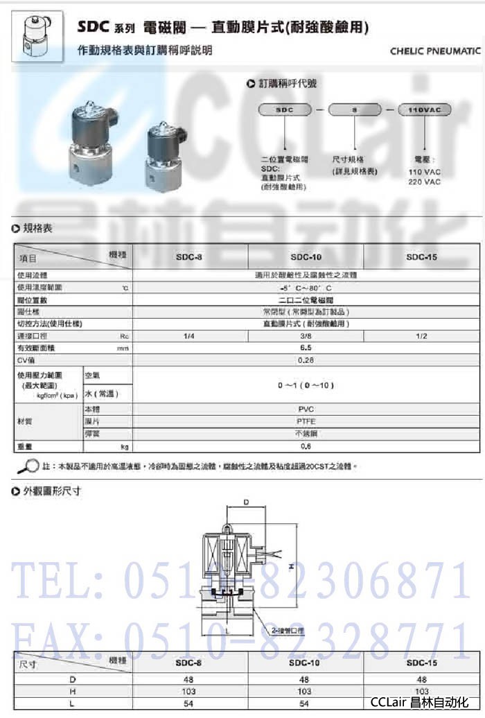 SDC-8,SDC-10,SDC-15,直動膜片式電磁閥