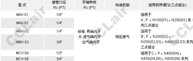 詳細(xì)信息 氣立可(chelic),MAV--01,MAV-02,MBV-02,MBV-03,MCV-04,MCV-06,氣源開關(guān)