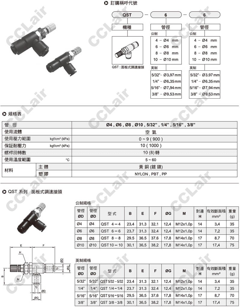 氣立可(chelic),QST4-4,QST6-6,QST8-8,QST10-10,QST5/32,QST1/4,QST5/16,QST3/8,面板式調(diào)速接頭