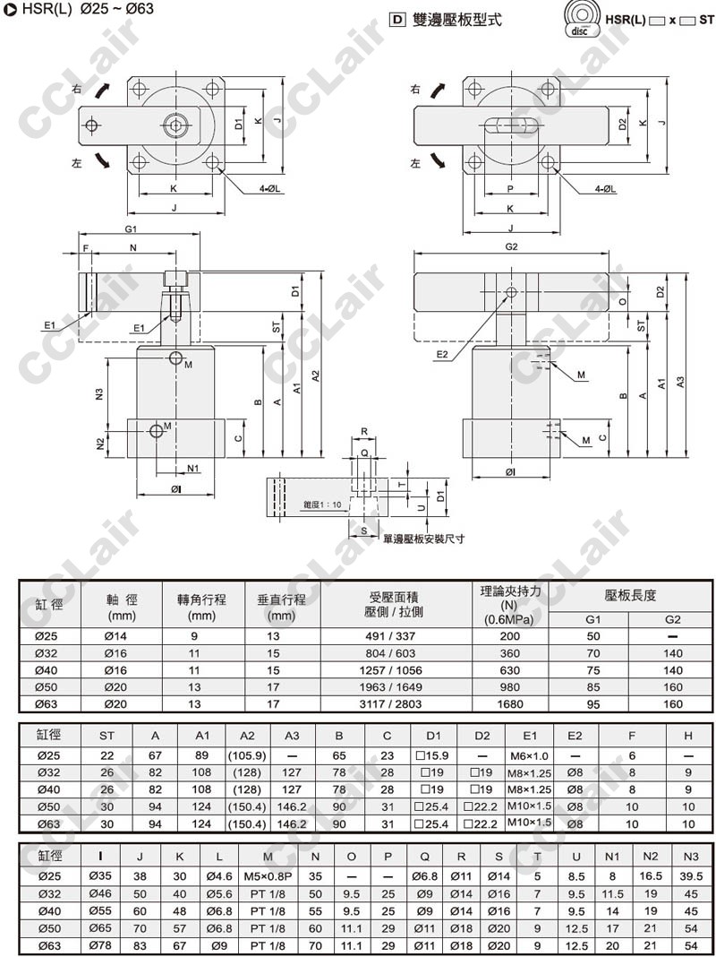 HSL-50*17,HSL-63*17,HSR-25*13-D,HSR-32*15-D,HSR-40*15-D,HSR-50*17-D,HSR-63*17-D,氣壓式轉(zhuǎn)角下壓缸