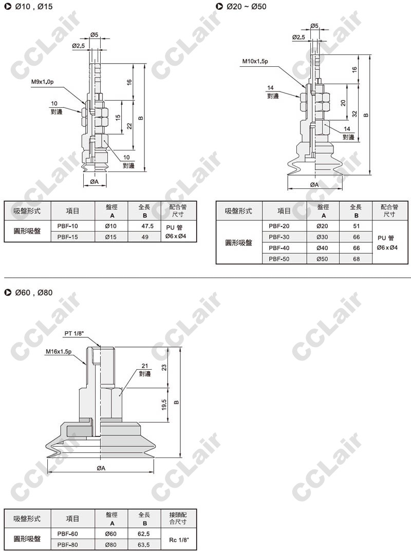 氣立可(chelic),PBF-10-S,PBF-15-S,PBF-20-N,PBF-30-N,PBF-40,PBF-50,PBF-60-S,PBF-80-N,真空吸盤