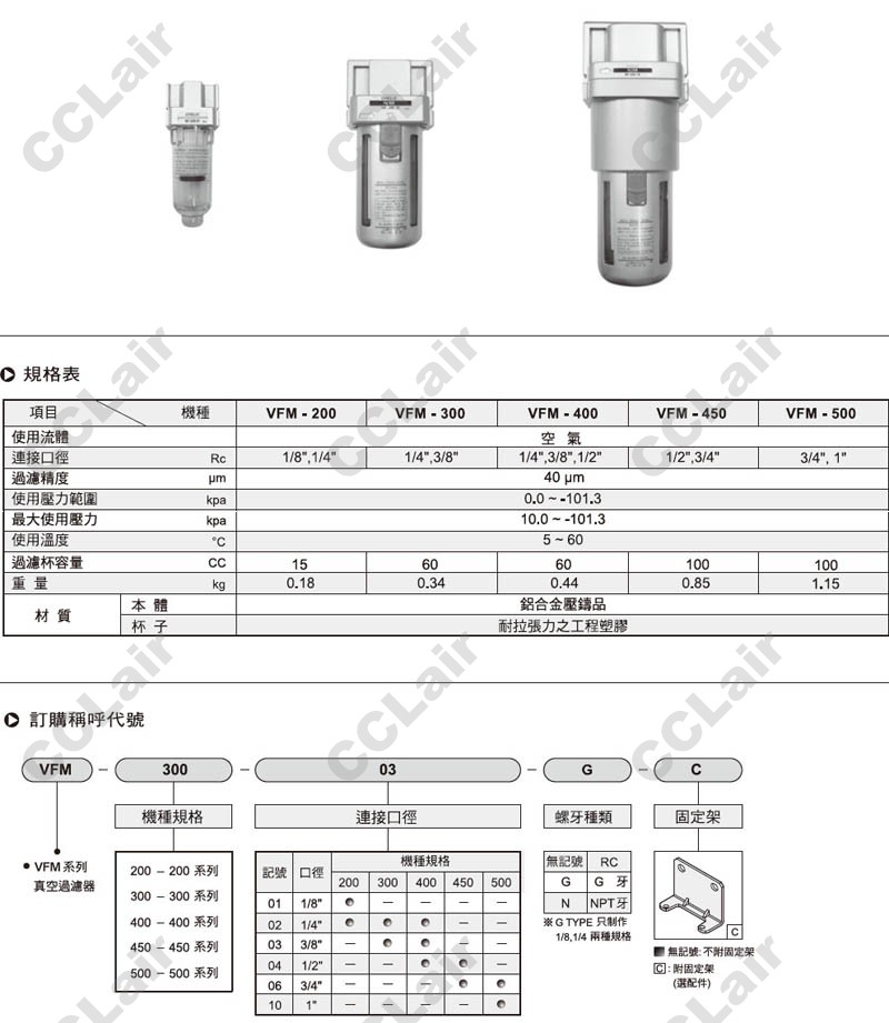 氣立可(chelic),VFM-200-01-G-C,VFM-300-02,VFM-300-03,VFM-400-02,VFM-450-04,VFM-500-06,真空過濾器