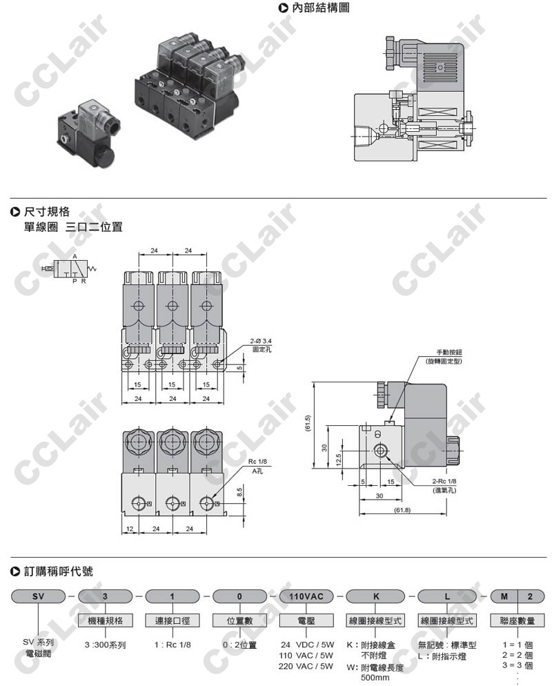 詳細(xì)信息 氣立可(chelic),SV-310-24VDC-K,SV-310-110VAC-K,SV-310-220VAC-K,SV-310-110VAC-W,電磁閥