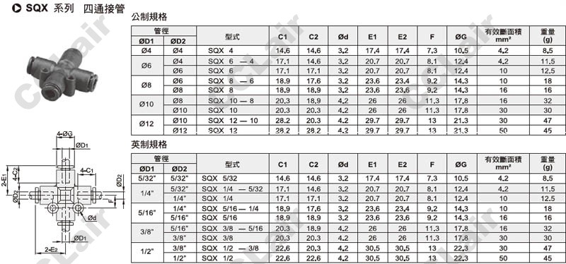 氣立可(chelic),SQX4,SQX8-6,SQX8,SQX10,SQX5/32,SQX1/4,SQX5/16,SQX3/8,SQX1/2,SQX6,SQX12