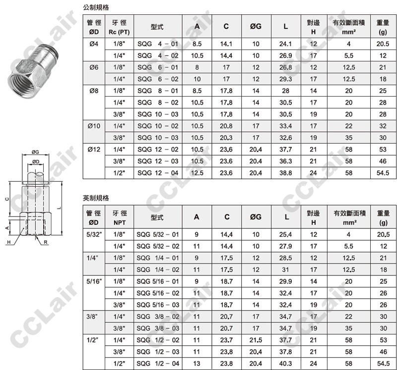 氣立可(chelic),SQG4-01,SQG6-01,SQG8,SQG10,SQG12,SQG5/32-01,SQG1/4,SQG5/16,SQG3/8,SQG1/2