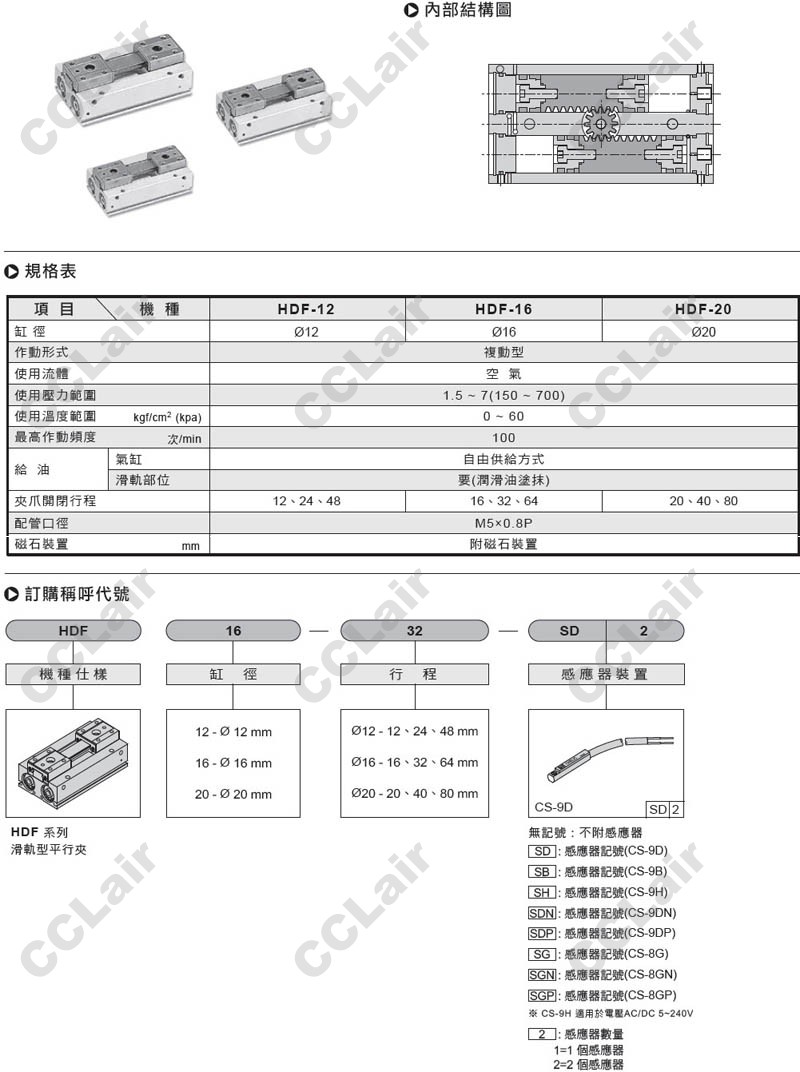 HDF-12-12-SD1,HDF-12-24-SD1,HDF-12-48-SD1,HDF-16-16-SD1,HDF-16-32-SD1,HDF-16-64-SD1,滑軌型平行夾