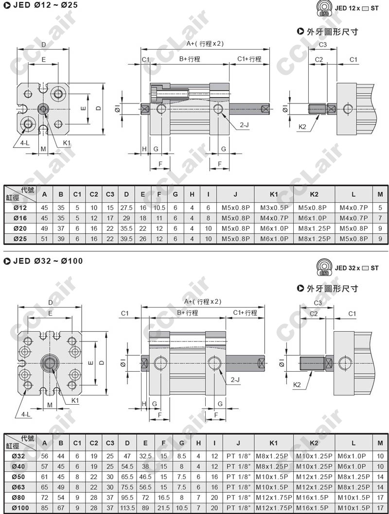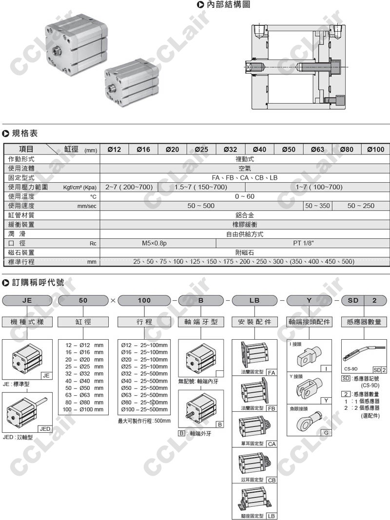 氣立可(chelic),JE12*25,JE20*50,JE32*75,JE40*100,JE50*125,JE63*25,JE80*50,JE16*75