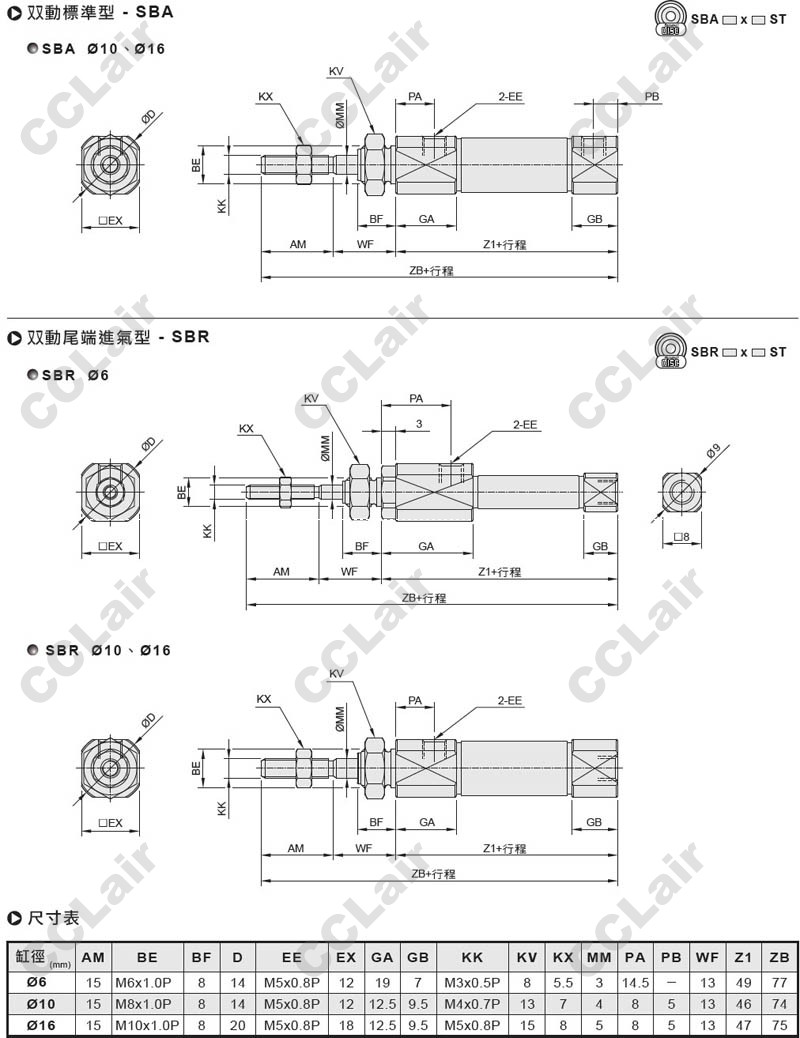 氣立可(chelic),SBA-06*15,SBB-10*30,SBD-10*15,SBR-16*45,SBA-10X30,SBB-16X60,筆型氣缸