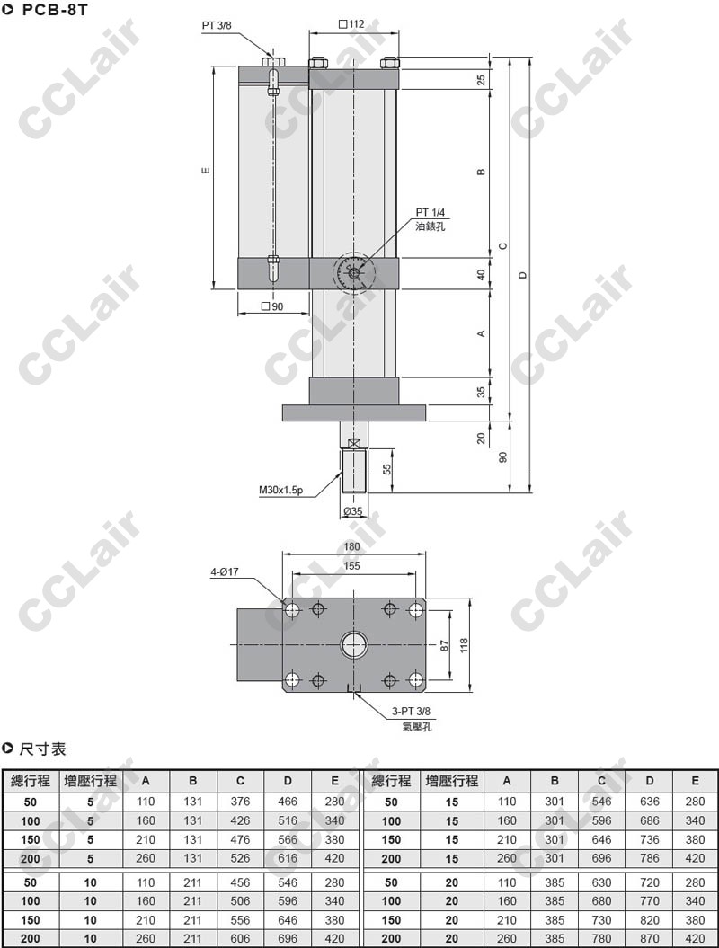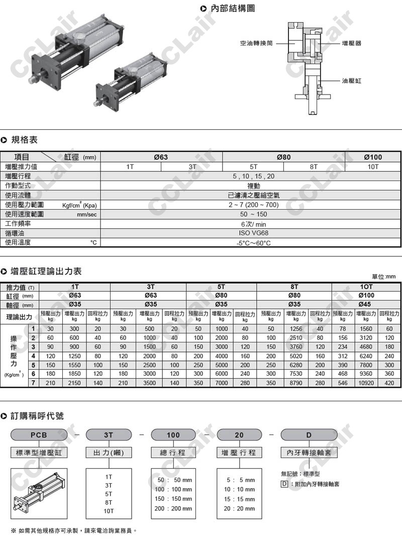 氣立可(chelic),PCB-1T-50-5,PCB-3T-100-10,PCB-5T-150-10,PCB-8T,PCB-10T,增壓缸