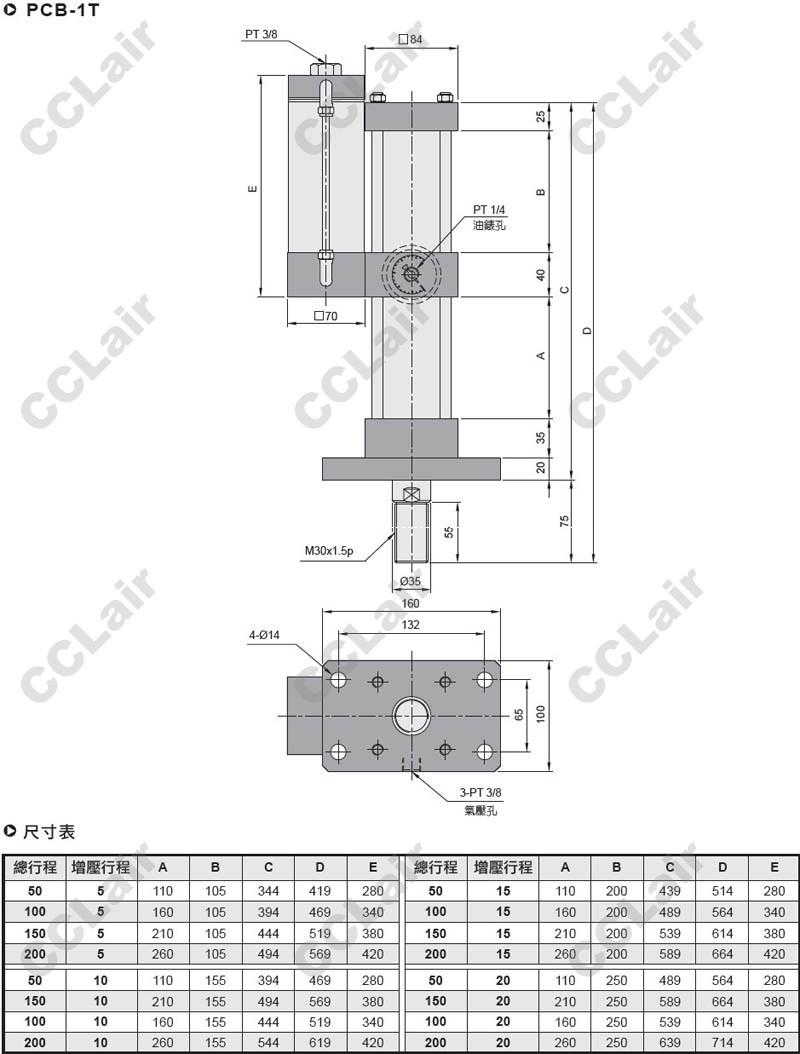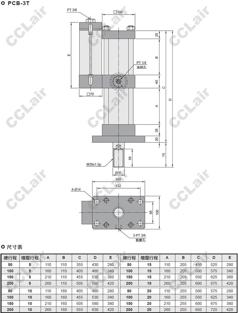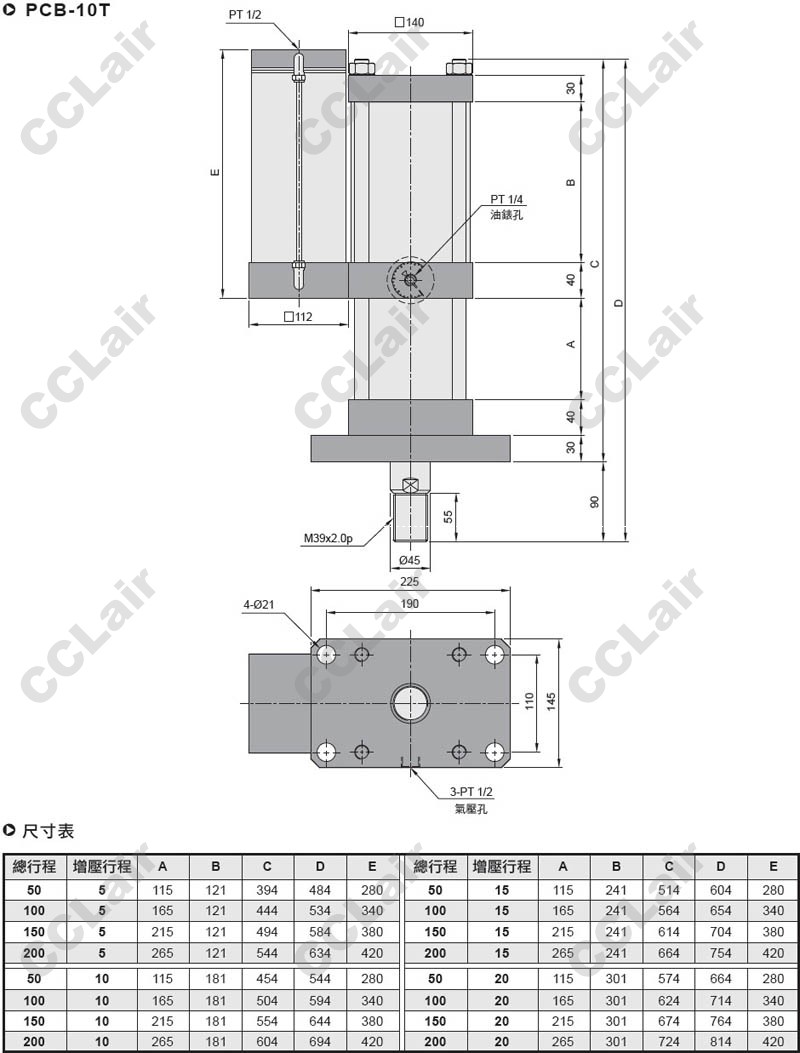 詳細(xì)信息 氣立可(chelic),PCB-1T-50-5,PCB-3T-100-10,PCB-5T-150-10,PCB-8T,PCB-10T,增壓缸