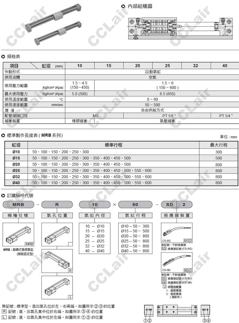 氣立可(chelic),MRB10*50,MRB-R15X100,MRB-R20*150,MRB25*200,MRB-L32*500,MRB-L40*550,磁偶式無桿氣缸