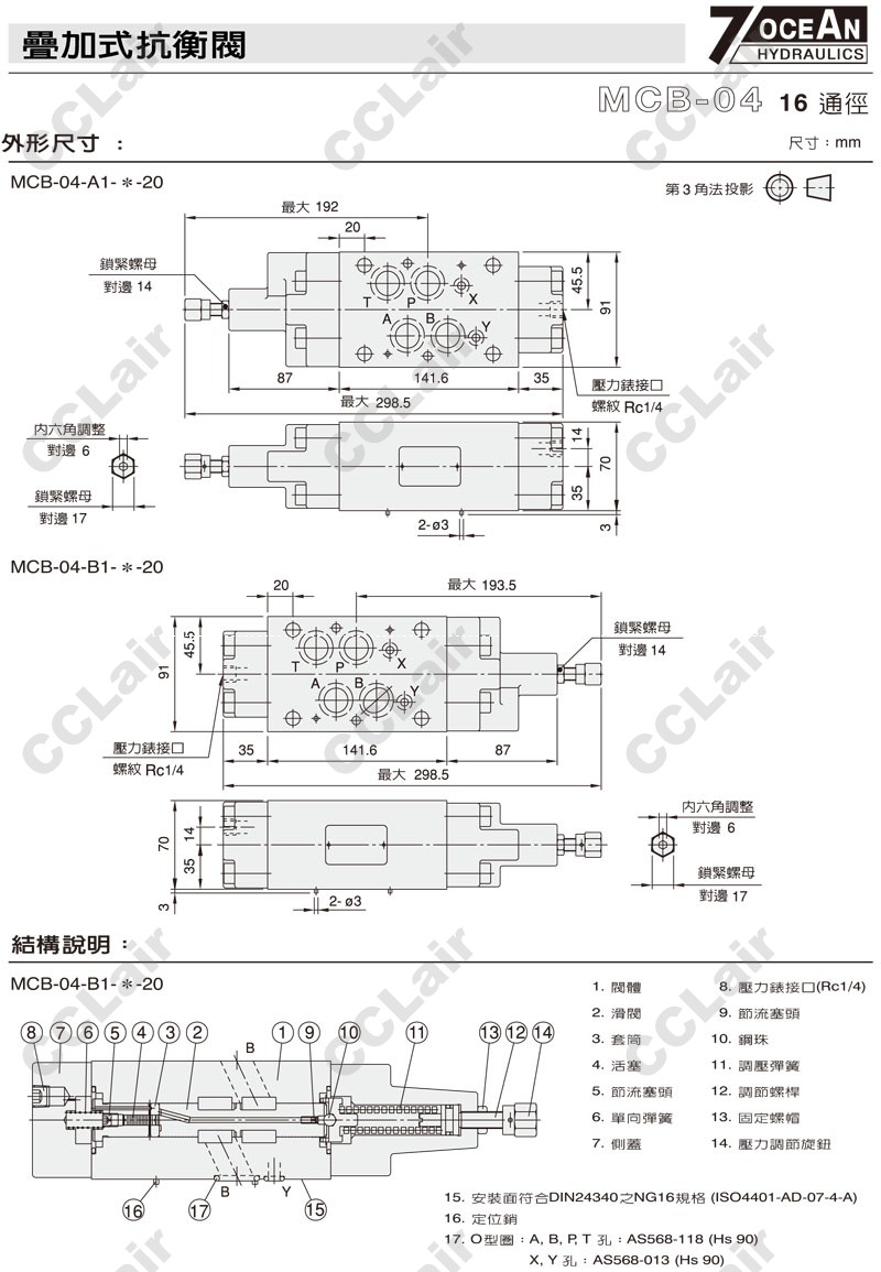 MCB-04-A1,MCB-04-B1,MCB-04-A1-1-10,MCB-04-B1-2-10,MCB-04-B1-1-20,7OCEAN七洋疊加式壓力抗衡閥