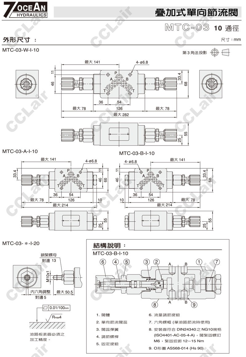 MTC-03-W,MTC-03-A,MTC-03-B,MTC-03-A-I-10,MTC-03-W-O-20,MTC-03-B-I-20,7OCEAN七洋疊加式單向節(jié)流閥