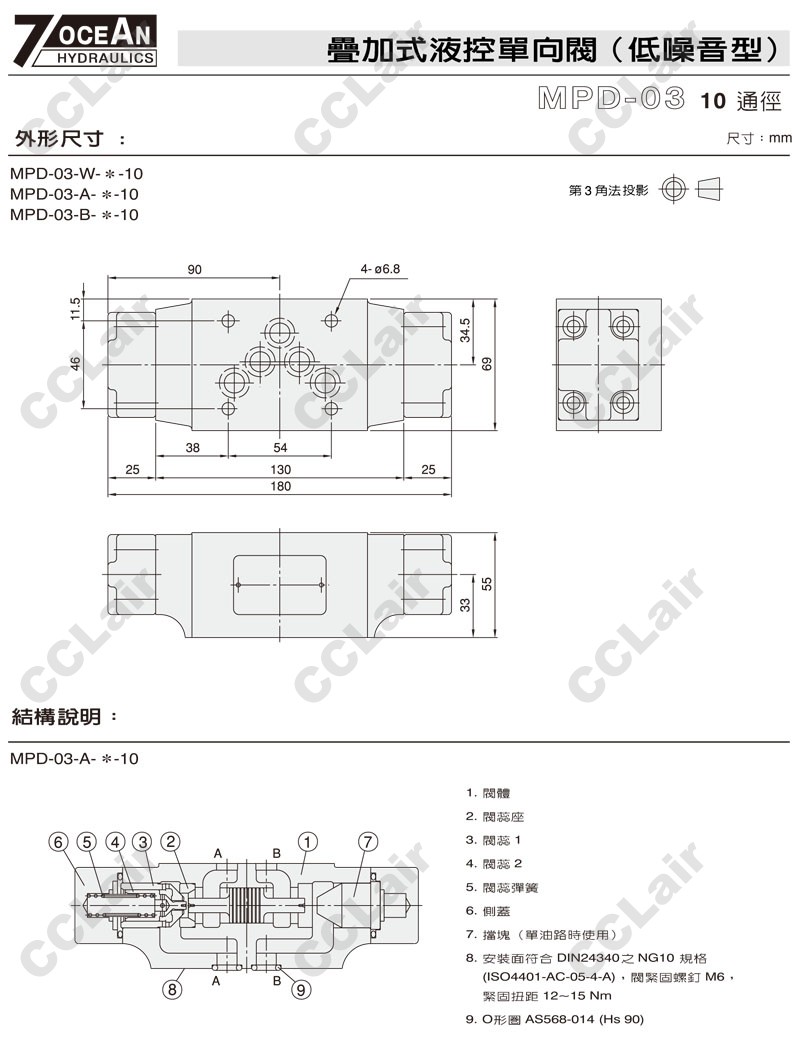 MPD-03-W,MPD-03-A,MPD-03-B,MPD-03-A-2-10,MPD-03-B-1-10,7OCEAN七洋疊加式液控單向閥