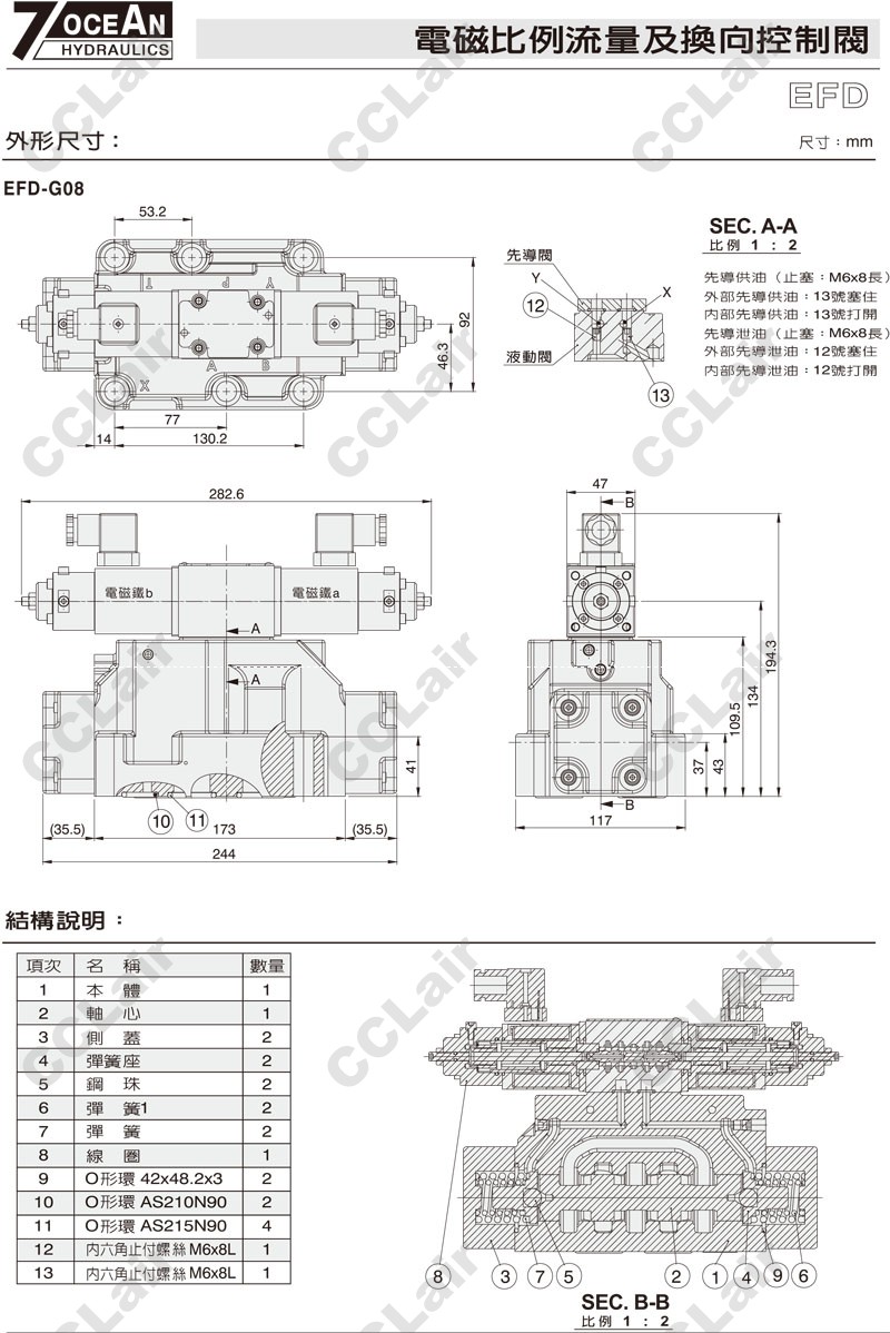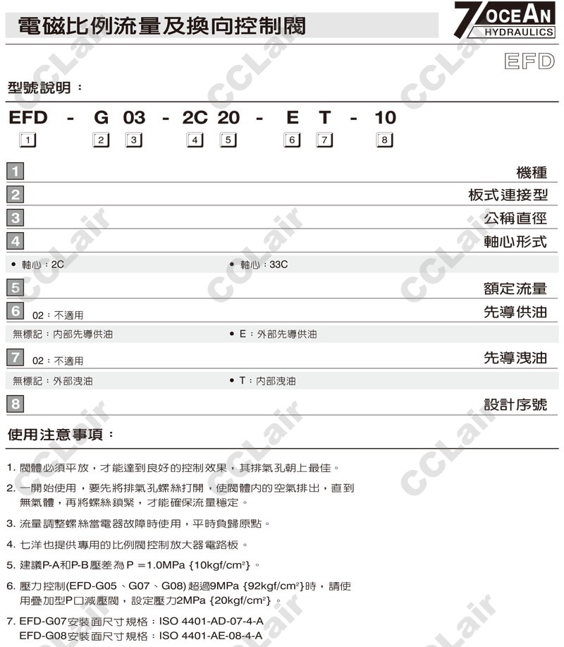 EFD-G03-2C20,EFD-G03-33C20,EFD-G03-33C20-ET-10,7OCEAN七洋電磁比例流量及換向控制閥