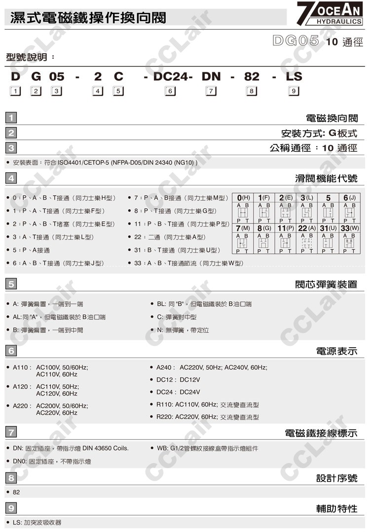 DG05-0,DG05-1,DG05-2,DG05-3,DG05-5,DG05-6,DG05-7,DG05-8,DG05-11,DG05-22,DG05-31,DG05-33,7OCEAN七洋濕式電磁鐵操作換向閥