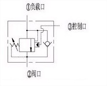 此閥允許液流從②到①自由流動,同時阻止其反向流動,若先導(dǎo) 口③壓力按比例增加,則①到②流量也按比例增加。