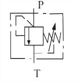 當在P口的壓力超過調壓彈簧設定的壓力時,錐閥 芯打開,P到T通,防止系統(tǒng)過壓。