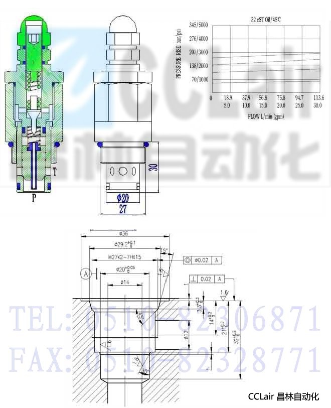 當(dāng)P口壓力未達(dá)到彈簧設(shè)定壓力的90%時(shí),P到T不通超過90%并繼續(xù)升高時(shí),P到T開始溢流,直到彈簧的最高設(shè)定壓力。
