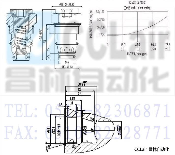 產品名稱:單向閥 產品型號: LCD15-01 機能符號: ![]() 工作過程 此閥使用時,允許液流以很低的壓力降從①口 到② 口,同時阻止液流從② 口到① 口. 當① 口壓力足夠大并克服彈簧力后.允許液流① 口到② 口流動. 技術參數(shù)(SPECIFICATIONS) 額定流量: 85L/min。 工作介質: 運動粘度為28~380cst礦物油。 最大工作壓力(Operating Pressure):315 Bar。 ![]() 共0條 相關評論 |