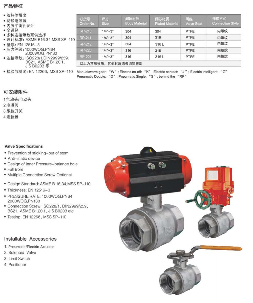 RP-210-DN15,RP-211-DN20,RP-212-DN25,RP-220-DN32,RP-221-DN40,兩片式球閥