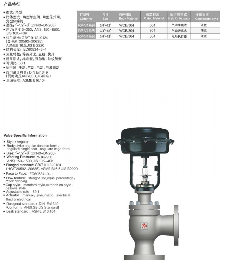 詳細(xì)信息 RV-V4-DN40,RV-V4-DN50,RV-V4-DN80,RV-V4-DN100,RV-V4-DN150,RV-V4-DN200角型調(diào)節(jié)閥