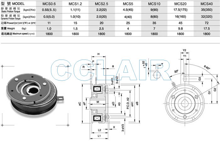 詳細(xì)信息 MCS0.6,MCS1.2,MCS2.5,MCS5,MCS10,MCS20,MCS40,電磁式離合器