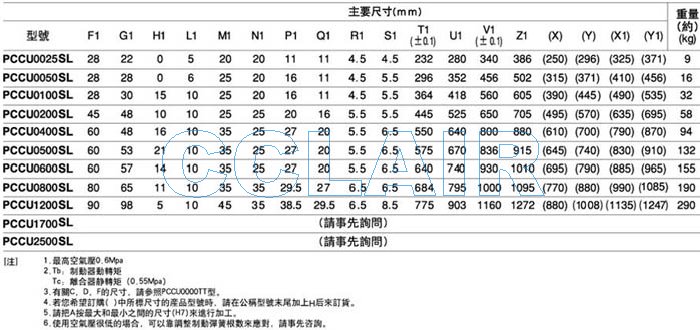 PCCU0025SL,PCCU0050SL,PCCU0100SL,PCCU0200SL,PCCU0400SL,PCCU0500SL,空壓離合制動器組