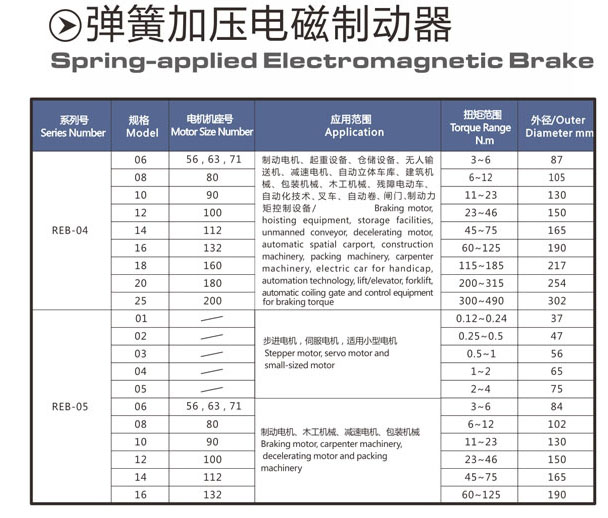 詳細(xì)信息 REB-04,REB-05,彈簧加壓電磁制動(dòng)器