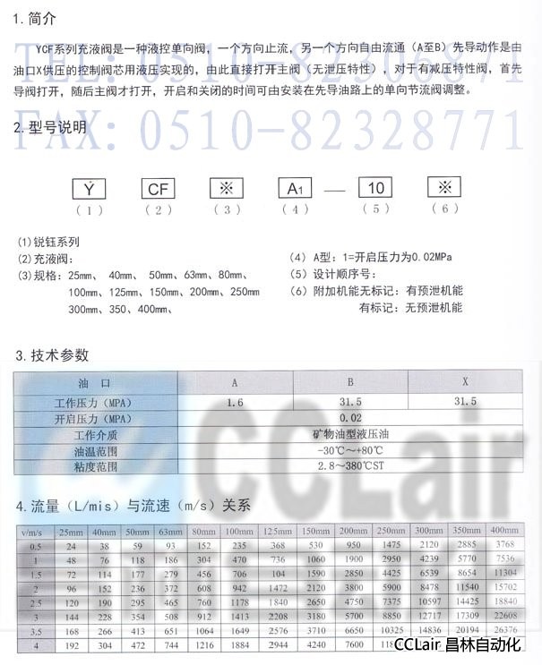 詳細信息 YCF100A1,YCF125A1,YCF150A1,YCF200A1,YCF250A1,YCF300A1,充液閥