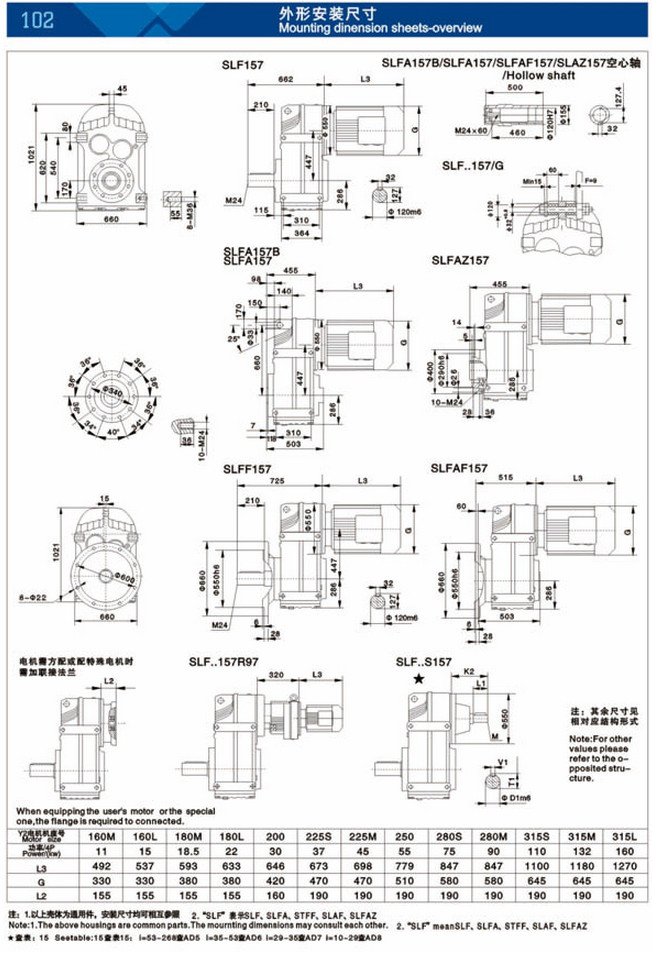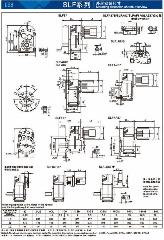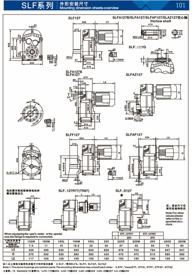 SLF37,SLF47,SLFA57B,SLFA67,SLF77,SLFA87B,SLFZ97,SLFA107,SLFAF127,SLFF157,平等軸斜齒輪減速機
