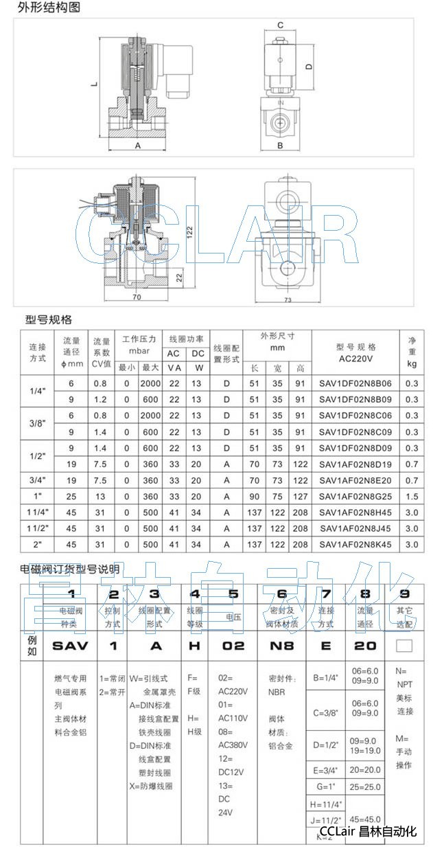 詳細(xì)信息 SAV1DF02N8B06,SAV1DF02N8B09,直動(dòng)式燃?xì)怆姶砰y(常閉型)